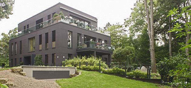 Neubau einer Villa auf einem Seegrundstück am Halensee. Errichtung von 550 m² auf drei Etagen für ein Ehepaar mit drei Kindern